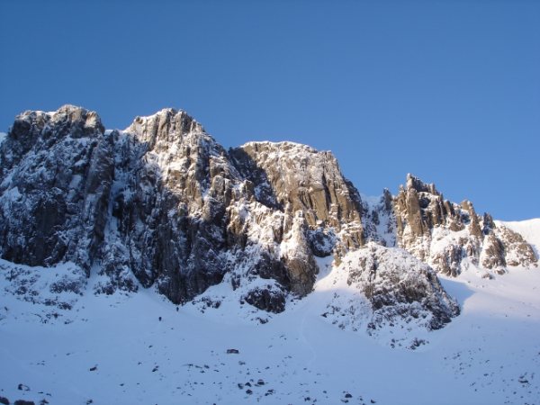 Climbers make their way to the start of the routes, in Stob Coire nan Lochain