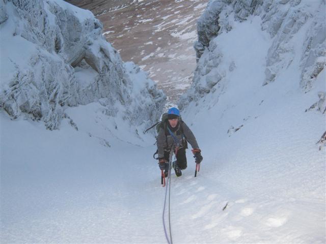 Andy on the last pitch of Red Gully, Sgorr na h'Ulaidh