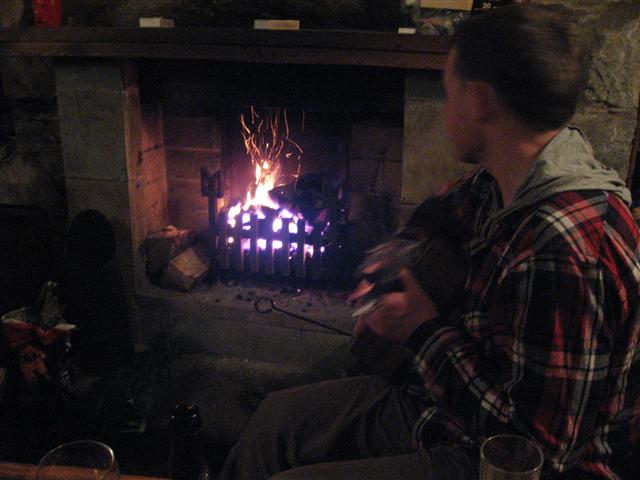 Dave struming away beside the fire.